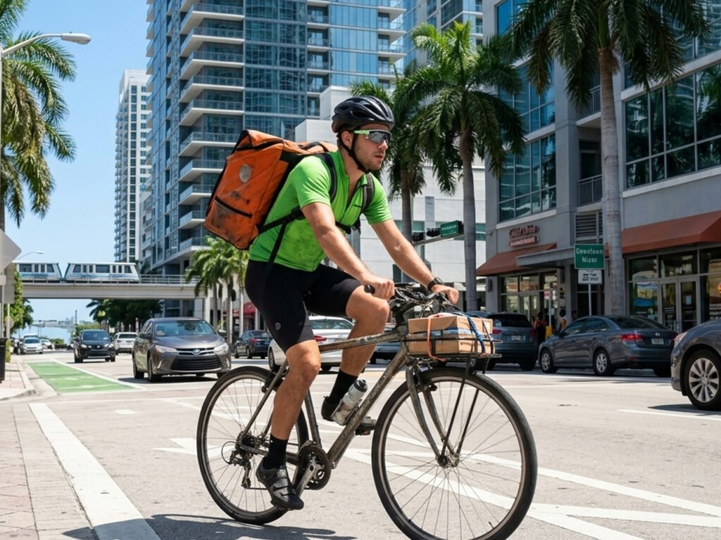 💡 En Miami, un mensajero en bicicleta activo puede ganar entre $800 y $1,500 por semana trabajando tiempo completo. En horas pico de almuerzo y cena, las ganancias por hora superan fácilmente las de un conductor de auto porque evitas el tráfico.